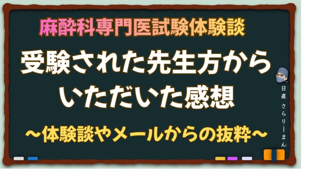 第60回麻酔科専門医試験の体験談.筆記試験,口頭試問の勉強方法などを,たくさんの受験生の方が麻酔科専門医試験体験談として寄せてくれました!実際の感想など生の声が参考になります. -