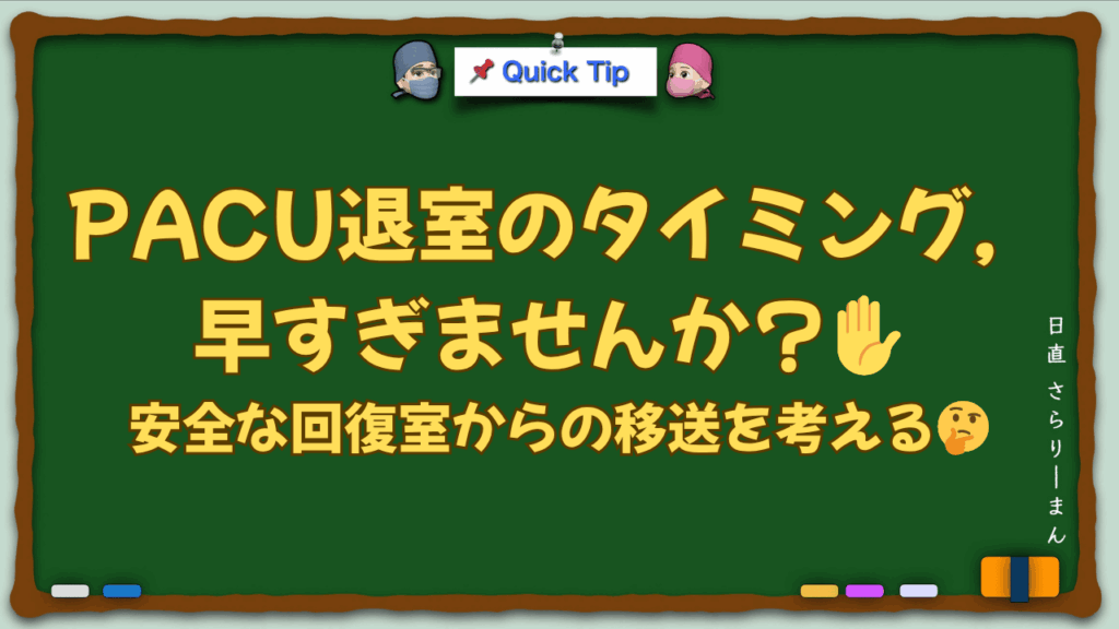 📌 Quick-Tip: PACU退室のタイミング、早すぎませんか? 安全な回復室からの移送を考える🤔